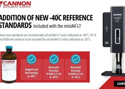 We at Zematra UK are excited to announce that CANNON Instrument Company has introduced two new reference standards, N.84B and N.95B, which are specifically designed for jet fuel testing at -40°C. These innovative standards will enhance the accuracy and reliability of testing procedures, ensuring superior performance in extreme conditions.
