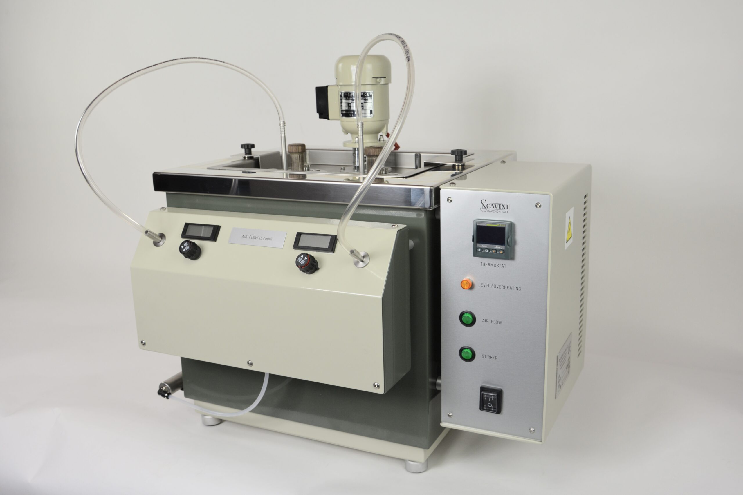 The apparatus is designed for determining evaporation loss of greases and oils in accordance with ASTM D972 and IP 183 standards. It features a durable benchtop steel case with an enamel finish and a stainless steel bath equipped with a drain valve, stainless steel heaters, and high-efficiency thermal insulation. A stainless steel cover with access openings enables easy placement of evaporation cells.