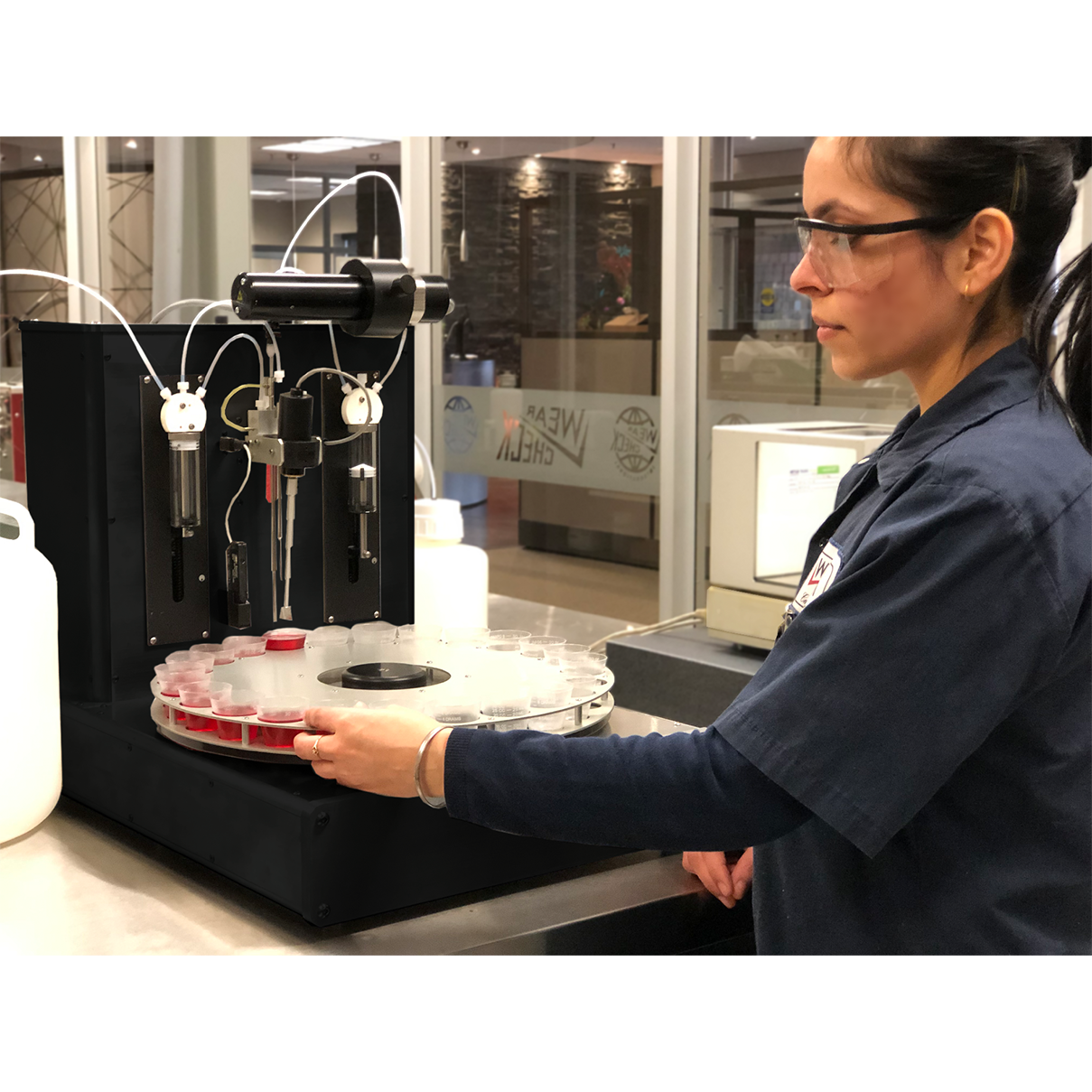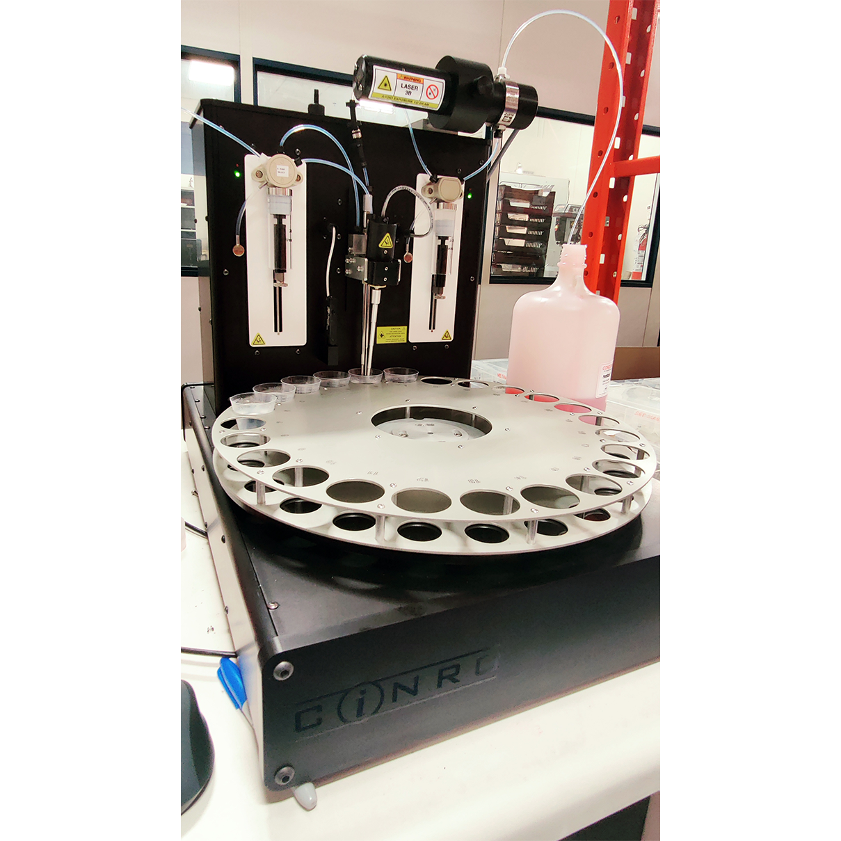 Introducing the CINRG CS-APC-22M compact particle counting system, the first fully automated auto-dilution particle counter for ASTM D7647. This cutting-edge technology combines equipment from leading manufacturers with innovative software developed by Wearcheck. Its complete automation allows for quick sample preparation and accurate dilution control, accommodating a wide range of viscosities. The system is highly customizable, with batch file creation and adjustable processing parameters. Additionally, automatic solvent verification ensures accurate results by assessing solvent cleanliness. It offers complete automation, allowing quick sample preparation in 32ml cups placed in a 24-position tray. Sample volume accuracy is ensured within ±2%, with the option for higher accuracy by pipetting or weighing samples. Final sample volume is standardized at 30 mL. With these features, the CINRG CS-APC-22M provides a flexible and efficient solution for particle counting in oil analysis at laboratories.