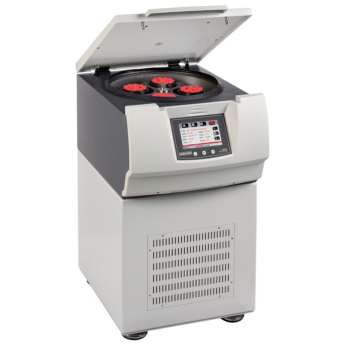 The refrigerated version of our floor standing equipment offers the maximum perShapence for your processes. Its design enables it to be installed in any space in the lab, avoiding the occupation of useful space. Its ergonomic design allows easy access to the rotor as well as traceability of the positioning to balance the load and easy identification.