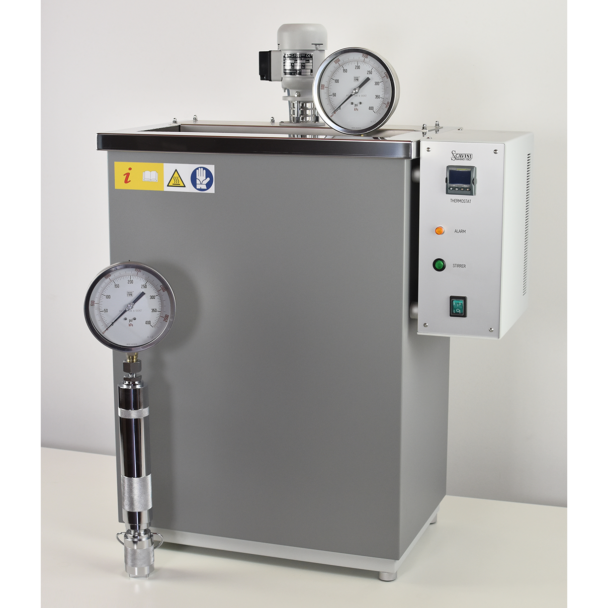 The ASTM D 323 Reid Vapor Pressure Apparatus is designed to measure the vapor pressure of gasoline. It utilizes a floor-mounted water bath that can support three cylinders.