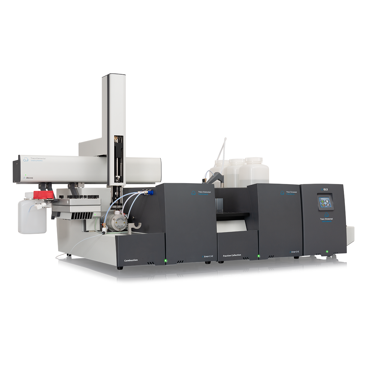 - 65-position fraction collector for storage of combustion products before IC measurement
