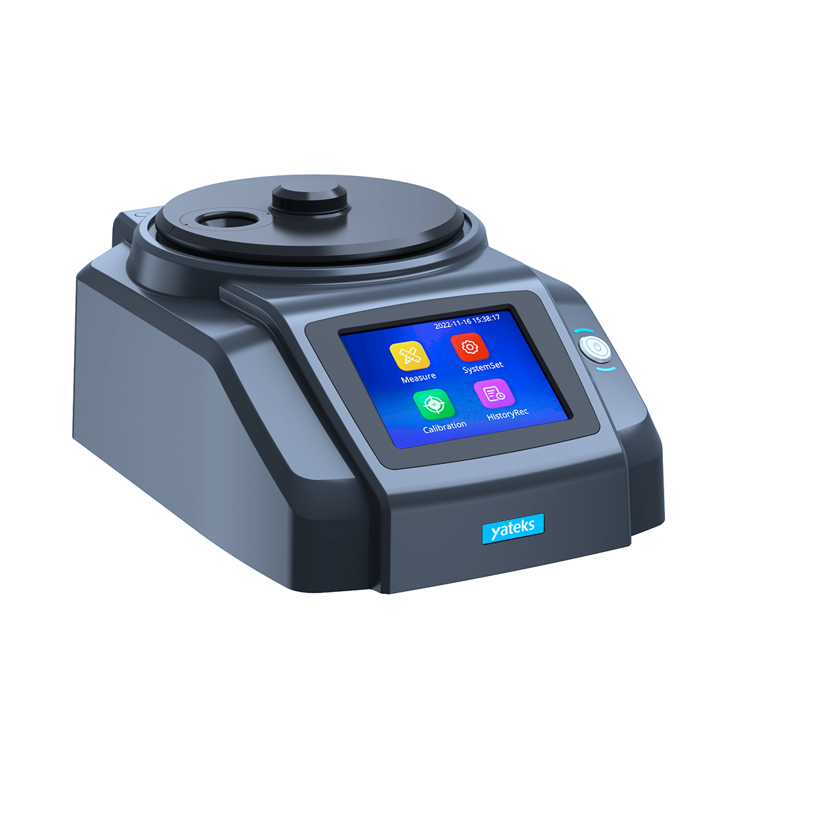 The device features an intuitive interface, allowing users to choose detection methods, name data, or use default settings for quick analysis. Results are displayed in real time during testing. Samples are measured in a 4.5 ml special oil sample container with a matching conversion ring.
